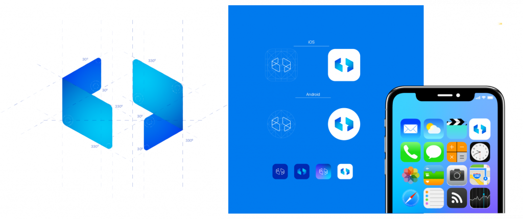 The icons are opposite each other and almost touching. This feature illustrates the seamless access to tools which the brand provide to support small/ medium scale businesses and individuals thereby creating solutions that people need to design the future they desire.