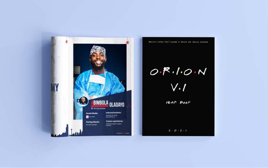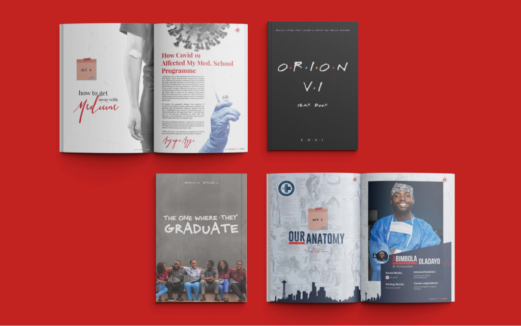 Orion VI Yearbook Design and print the 2021 Yearbook for Babcock University Medical students graduating class. Concept I was to come up with different themes for the different categories of the book. CoverBehind the Scene designFRIENDS TV Show designArticlesHow To Get Away With Murder TV show themeStudent ProfilesGrey’s Anatomy TV show themePicture CollageFRIENDS TV show theme Cover Design Final Cover Design Article Section Profile Section Yearbook Jacket Next Project Contact information Feel free to reach out to me any time. I prefer to talk over email, especially since we may be a few time zones away. E:hello@gidibabs.com About Me Works File Request Photography